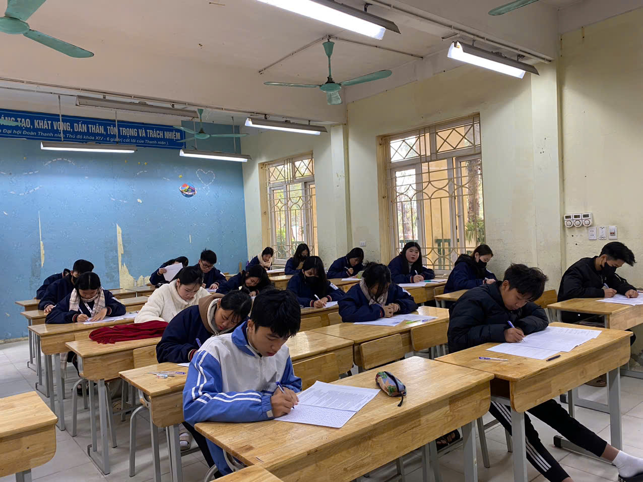 Thực hiện kế hoạch năm học 2024 - 2025 giữa mỗi học kì nhà trường tổ chức thi khảo sát đánh giá chất lượng kiến thức chung cho toàn trường, cụ thể ngày 14,15/12/2024 nhà trường đã tổ chức thi khảo sát với học sinh khối 12 thi Văn, Toán và các môn học sinh đã lựa chọn để phục vụ cho kì thi THPT quốc gia năm 2025. Khối 10 và khối 11 thi 3 môn Văn -Toán - Tiếng anh. Đây là một hình thức kiểm tra kiến thức và kỹ năng của học sinh để giáo viên nắm bắt được kiến thức nền tảng của học sinh sau nửa kỳ học, xác định những điểm mạnh, điểm yếu của từng học sinh và cả lớp, điều chỉnh phương pháp giảng dạy cho phù hợp với trình độ của học sinh. Đối với học sinh đánh giá lại kiến thức đã học và xác định những phần cần ôn tập khi còn đang hổng, nắm bắt được mục tiêu học tập cho giai đoạn tiếp theo. Đối với phụ huynh hiểu rõ hơn về năng lực học tập của con em mình để cùng nhà trường theo dõi và hỗ trợ việc học của con.