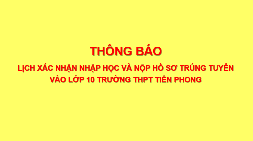- Thí sinh xác nhận nhập học bằng hình thức trực tuyến hoặc đến trường THPT Tiền Phong xác nhận bằng hình thức trực tiếp.